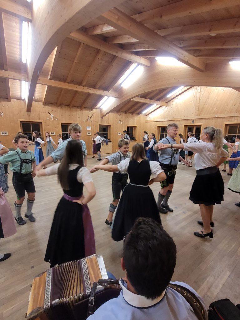 Am ersten Abend konnte die Gauvolkstanzwartin Hildegard Kallmaier den Jugendlichen und auch den älteren Tanzfreudigen den Walzerschritt und die dazu passenden Volkstänze beibringen. Am zweiten Tag, die Woche darauf, folgte der Polka-Schritt und Tänze dazu.
