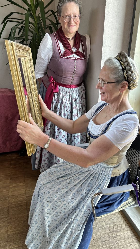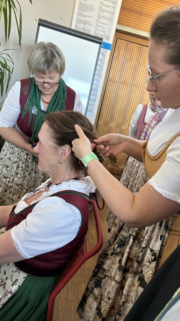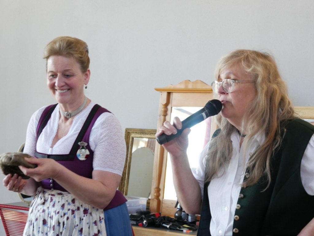 Sie verwies außerdem auf die Dirndlgwand-Ausstellung im Trachtenkulturzentrum in Holzhausen und dem „Tag der Tracht“ am 14.Juli. Während der Gesprächsrunde tauschte man Erfahrungen zum Thema „Drehrock für Kinder nähen“ aus.