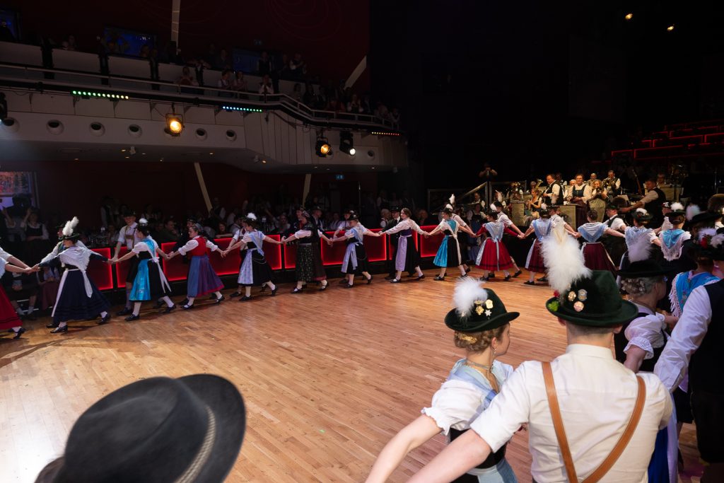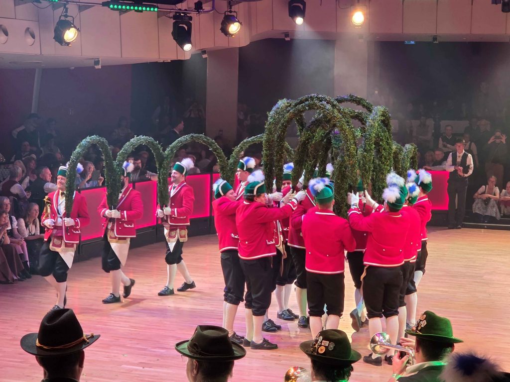 Am Freitag, 23. Januar 2026 fand im Deutschen Theater in München der elfte 'Oide Wiesn Bürgerball' des Festrings München statt und auch der Bayerische Trachtenverband präsentierte sich wieder hervorragend. Die Repräsentantenpaare der angeschlossenen Gauverbände – darunter die Gaujugendgruppe vom Gauverband I - tanzten zunächst Mühlradl-Figuren und anschließend in drei Kreisen (Tanzkreis, Kreis mit chiemgauerischem Plattler- und Drahstil, Kreis mit oberlandlerischem Plattler- und Drahstil) die Olympia-Sternpolka als Referenz an die Stadt München, da dieser Tanz 1972 anlässlich der Olympischen Spiele in München entstanden ist. Außerdem zeigten die Münchner Schäffler ihren berühmten Schäfflertanz, der nur alle sieben Jahre in der Faschingszeit aufgeführt wird und an das Ende der Pestzeit erinnert. Im großen Ball-Saal spielten die Oktoberfest-Musikanten unter der Leitung von Wolfgang Grünbauer auf, im Silbersaal die Blaskapelle Beratzhausen und im Foyer trug die Rottauer Tanzlmusi zum zünftigen Tanzvergnügen bei. Erneut ein schöner Abend, dem die Mitwirkenden aus den Reihen des Bayerischen Trachtenverbandes wieder eine besonders festlich-bayerische Note verliehen haben.